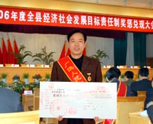 在2月27日縣委、縣府召開的全縣經濟社會發展目標責任制獎懲兌現大會上,我公司榮獲“廣饒縣納稅企業一等獎”,并獎勵公司法人代表趙曰嶺董事長獎金20萬元。