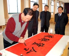 3月24日,山東省書畫藝術促進會一行7人在原省人大副主任何宗貴的帶領下到我公司進行書畫交流,公司董事長趙曰嶺向書畫家們介紹了企業發展情況并陪同到工業園進行了參觀,書畫家們被充滿和諧,蓬勃發展的良好企業態勢所感染,紛紛揮毫潑墨,為企業奉獻上了一幅幅書畫大作。