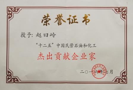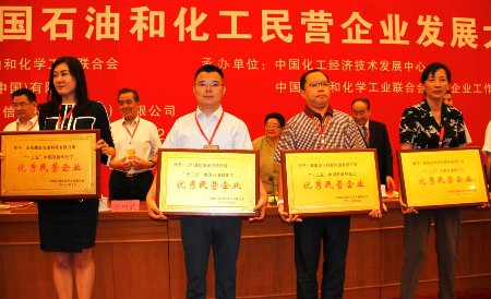 7月2日,2016中國石油和化工民營企業發展大會在北京召開。會議由中國石油和化學工業聯合會主辦,十屆人大常委會副委員長顧秀蓮到會并致辭。中國石油和化學工業聯合會會長李壽生、原會長李勇武出席會議。大會由中國石油和化學工業聯合會副會長兼秘書長趙俊貴主持,副會長傅向升宣讀關于表彰《“十二五”中國石油和化工優秀民營企業、“十二五”中國石油和化工優秀民營企業家的決定》。在會議上,我公司被授予“十二五”中國石油和化工優秀民營企業,董事長趙曰嶺被評為“十二五”中國民營石油和化工杰出貢獻企業家,受到大會隆重表彰。