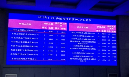 近日,東營經濟技術開發區管委會公布今年1—7月份納稅排名前100名企業名單,集團公司的兩個全資子公司榜上有名,其中金嶺新材料有限公司高居榜首,濱海熱力有限公司位居第八。