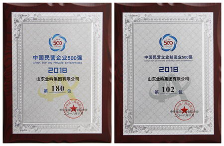2018年8月29日,“2018中國民營企業(yè)500強(qiáng)峰會(huì)”在遼寧沈陽舉行,會(huì)議發(fā)布了《2018中國民營企業(yè)500強(qiáng)榜單及分析報(bào)告》,金嶺集團(tuán)入榜“2018中國民營企業(yè)500強(qiáng)”,位列第180位,同時(shí)入榜“2018中國民營企業(yè)制造業(yè)500強(qiáng),”位列第102位。