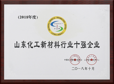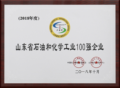 2018年10月31日,2018(第七屆)中國化工產學研高峰論壇在濟南隆重召開,2018山東省石油和化學工業100強企業發布會同期舉行。會上,中國化工情報信息協會和山東省化工信息中心參照慣例并結合山東省企業的現實數據,通過主管部門、各市地、各化工園區管理委員會推薦,根據企業主營業務收入數據,經過綜合評議,排出了2018山東省石油和化學工業100強企業,公司位列第11位,并入圍山東化工新材料行業十強企業。