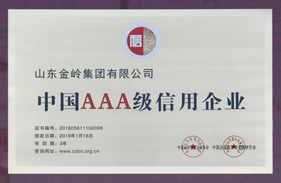 2019年1月16日,在中國合作貿易企業協會、中國企業改革與發展研究會主辦的“2019中國企業信用發展論壇暨第十屆誠信公益盛典”上,金嶺集團獲評“中國AAA級信用企業”,表明公司在企業信譽、品牌建設方面得到了社會的充分認可。多年來,公司始終高度重視企業誠信體系建設,加強合同履約考核,提升全體員工誠信意識,營造了“守信光榮,失信可恥”的氛圍,樹立了良好的企業信用形象。