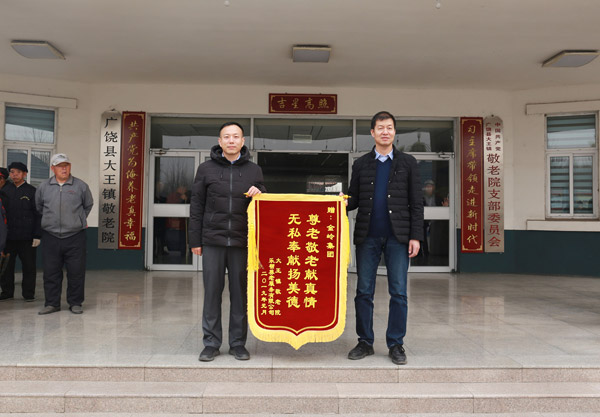 2019年1月30日,在中華民族傳統節日己亥豬年春節即將到來之際,金嶺集團總裁趙棟一行到大王鎮敬老院走訪慰問,為每位老人送去一份營養品新春愛心大禮包,以表達公司對老年人的關愛之情。大王鎮人大主席侯向斌、敬老院院長陳洪敏對公司多年來關注養老事業給予高度評價。 尊老敬老是中華民族的傳統美德。多年來,在企業快速發展的同時,金嶺集團崇尚敬老事業,每年都為當地敬老院的老人送去慰問品,體現了對老年人的關心關愛,營造了愛老敬老的社會氛圍。 在多年來的發展歷程中,金嶺集團勇于承擔社會責任,積極參與愛老敬老、環保、扶貧、救災、助殘、扶危濟困等公益慈善事業,大力支持當地教育、文化、醫療、基礎設施建設,為地方各項社會事業發展做出了突出貢獻。