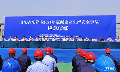 2021年6月2日,東營市2021年氯堿企業(yè)生產(chǎn)安全事故應(yīng)急演練暨廣饒縣第20個全國安全生產(chǎn)月活動啟動儀式在大王公司舉行。東營市副市長、市公安局局長戚思宇,市政府副秘書長、市應(yīng)急管理局局長、市市域治理運行管理中心主任劉良范,廣饒縣委常委、常務(wù)副縣長張江圣,副縣長、縣公安局局長楊秀林,大王鎮(zhèn)黨委副書記、鎮(zhèn)長李洪剛,大王鎮(zhèn)黨委統(tǒng)戰(zhàn)委員、應(yīng)急管理局局長韓林,發(fā)展改革、工業(yè)和信息化、生態(tài)環(huán)境、交通運輸、衛(wèi)生健康、市場監(jiān)管、氣象、消防等部門單位負責(zé)同志,金嶺集團董事長趙曰嶺、總裁趙棟及公司相關(guān)人員參加了演練活動。