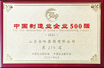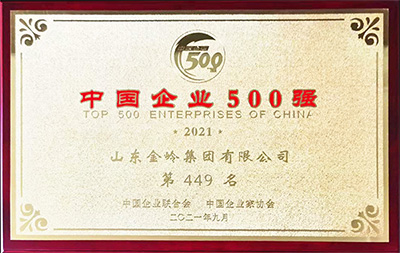 2021年9月,中國企業聯合會、中國企業家協會發布2021中國企業500強、2021中國制造業企業500強榜單,金嶺集團位列“2021中國企業500強”第449位,“2021中國制造業企業500強”第219位。公司已連續9年入圍中國企業500強。過去的一年,公司面對復雜嚴峻的國內外形勢,努力克服新冠疫情影響,積極應對市場的激蕩變化,深入規范公司內部管理,適時調整組織機構,強化生產經營控制,取得了良好的經營業績。