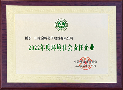 2022年11月,在中國環境報理事會舉辦的“2022年度企業綠色發展典型案例遴選活動”中,山東金嶺化工股份有限公司被授予“2022年度環境社會責任企業”榮譽稱號,以表彰公司在深入貫徹生態文明思想,強化環境社會責任意識、實現綠色高質量發展中做出的突出貢獻。