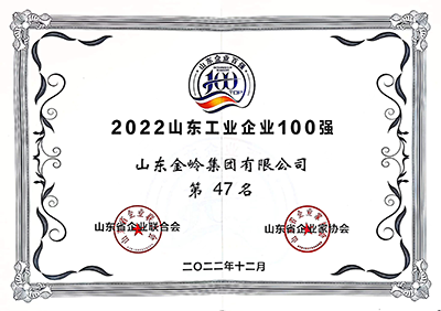 2022年12月,山東省企業聯合會、山東省企業家協會發布2022山東企業100強、山東工業企業100強榜單,金嶺集團位列“2022山東企業100強”第59位,“2022山東工業企業100強”第47位。近年來,公司面對復雜的經濟形勢和反復爆發的新冠疫情,積極采取有效應對措施,及時調整生產負荷,改變經營策略,加快項目建設,經營業績持續攀升,競爭實力不斷增強,保持了持續穩定高質量發展。