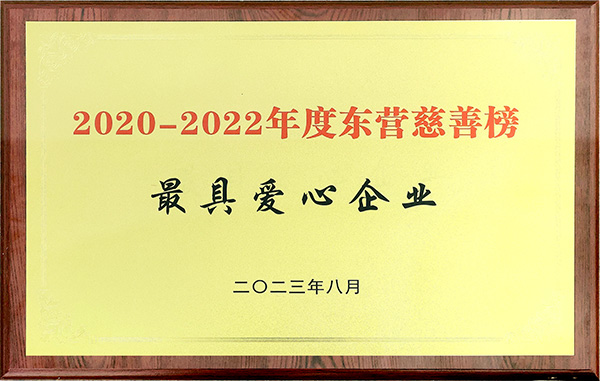 由山東省民政廳、東營市市委、市政府、市人大、市政協、市慈善總會聯合主辦的“2023年東營市慈善大會”于2023年9月1日舉行,會上金嶺集團被授予“2020-2022年度東營慈善榜最具愛心企業”, 以表彰公司為行善樂善活動、公益慈善事業作出的突出貢獻。