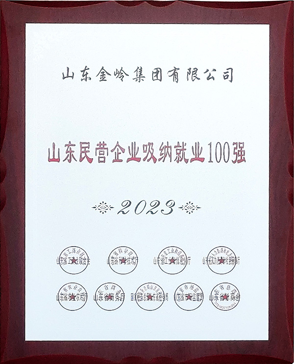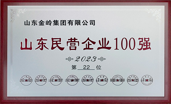 2023年8月,由山東省工商業(yè)聯(lián)合會、山東省科學(xué)技術(shù)廳、山東省工業(yè)和信息化廳等8個(gè)單位聯(lián)合組織舉辦的2023山東民營企業(yè)100強(qiáng)系列榜單發(fā)布會在德州召開,會上發(fā)布2023年山東民營企業(yè)100強(qiáng)系列榜單,金嶺集團(tuán)位列 “2023山東民營企業(yè)100強(qiáng)”第22位,并被授予“2023山東民營企業(yè)吸納就業(yè)100強(qiáng)”榮譽(yù)稱號。
