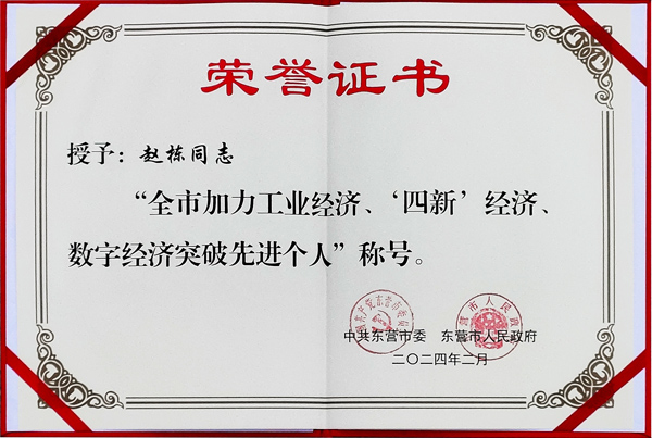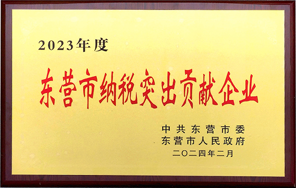2024年2月20日,在東營市委、市政府召開的東營市2023年度綜合表彰暨高質量招商引資項目建設大會上,山東金嶺集團有限公司被評為“東營市納稅突出貢獻企業”,總裁趙棟被授予“全市加力工業經濟、‘四新’經濟、數字經濟突破先進個人”榮譽稱號,以表彰公司在復雜的經濟形勢下,依法納稅、誠信經營,對地方經濟發展做出的突出貢獻。