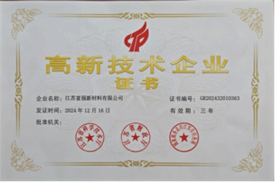 2025年2月18日,經江蘇省科學技術廳、江蘇省財政廳、國家稅務總局江蘇省稅務局層層嚴格審核、多輪評估,江蘇富強新材料有限公司被評為高新技術企業。