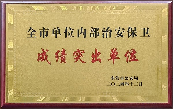 2025年2月20日,山東金嶺化工股份有限公司被東營市公安局評(píng)為“全市單位內(nèi)部治安保衛(wèi)成績突出單位”。