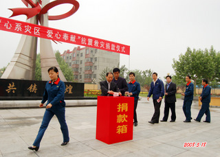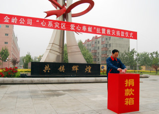 四川地震災情牽動著每一個金嶺人的心,災情發生后公司向全體員工發出了“一方有難,八方支援”向災區捐款的倡議,并于5月18日在辦公樓前舉行了“心系災區、愛心奉獻”抗震救災捐款儀式,大家紛紛伸出援助之手,僅一天時間就捐款50萬元,其中董事長趙曰嶺捐款25萬元,向災區人民奉獻上金嶺人的一片愛心。