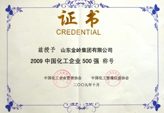 公司榮獲2009中國化工企業(yè)500強稱號