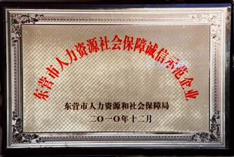 近日,我公司被東營市人力資源和社會保障局評為“東營市人力資源社會保障誠信示范企業”以表彰我公司在促進社會就業和用工勞動保障方面所做出的突出貢獻。