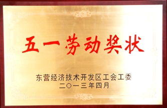 近日,東營經濟技術開發區工會工委授予新材料公司五一勞動獎狀榮譽稱號,以表彰我公司搶抓機遇、積極作為,在加快黃藍經濟區建設中作出的突出貢獻。